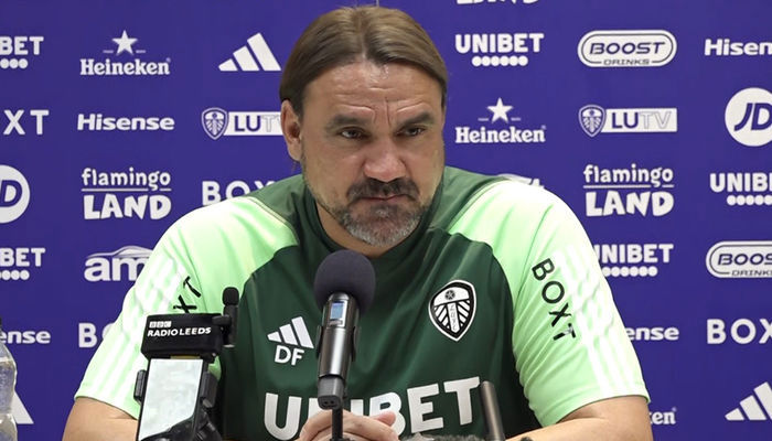 Daniel Farke snakket med media i forkant av kampen.